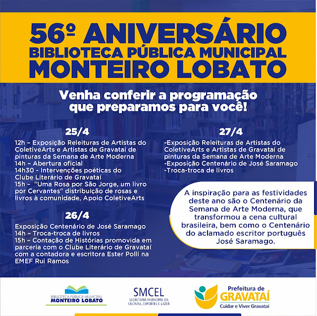 Está começando a Semana de aniversário da Biblioteca Municipal Monteiro Lobato em Gravataí/RS e o Coletive estará participando novamente.